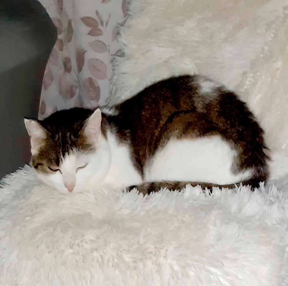 Aisha luovutetaan madotettuna, rokotettuna, sirutettuna, leikattuna sekä FiV/FelV-testattuna.