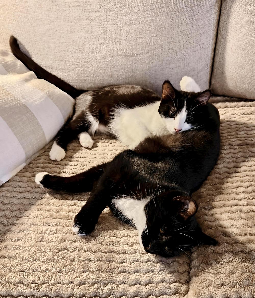 Mustavalkoiset tytöt Iiris 5 kk ja Kimble 7 kk etsivät yhteistä tai kissakaverillista kotia. Tytöt tulivat samasta kissapopulaatiosta ja asuvat yhdessä sijaiskodissa Seinäjoella. Sijaiskodissa tytöt elävät sijaiskodin neljän aikuisen kissan kanssa ja tulevat heidän kanssaan hyvin toimeen.