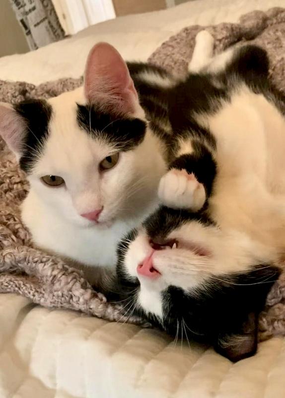 Ruokailut ja hiekkalaatikolla käynnit sujuvat molemmilta hienosti. Patu ja Sylvesteri luovutetaan moneen kertaan madotettuina, leikattuina, rokotettuina, sirutettuina ja Fiv/Felv-testattuina terveiksi.