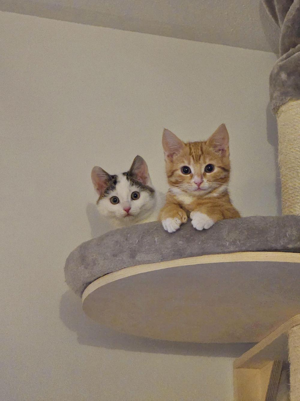Tao (valkoharmaa) ja Tofu (oranssi) ovat arviolta 17 viikkoiset veljekset, jotka on loukutettu ulkoa kahden siskonsa kanssa. Pojat asuvat sijaiskodissaan Seinäjoella, jossa on myös perheen omat aikuiset kissat. Etsinnässä olisi pojille yhteinen koti.