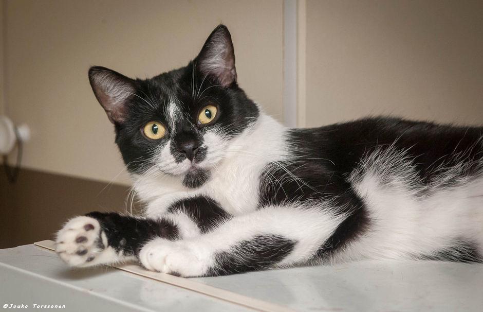 Elli on noin 2-vuotias kiltti ja rauhallinen tyttökissa. Siitä on kuoriutunut ihmisrakas ja leikkisä kissa, joten se on aivan täydellinen rakkauspakkaus. Ellillä on kaunis mustavalkoinen väritys ja sen silmät ovat keltaiset kuin pantterilla. Elli saapui sijaiskotiin pentujensa kanssa, jotka se hoiti mallikkaasti. Pennuista vielä Ronja odottaa omaa kotia.