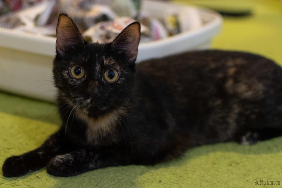 Uudessa kodissaan hän tykkäisi, jos saisi aktivointia esimerkiksi erilaisten temppujen ja käskyjen opettelun muodossa, että saisi aivojumppaa. Tämä tyttö oppii nopeasti!