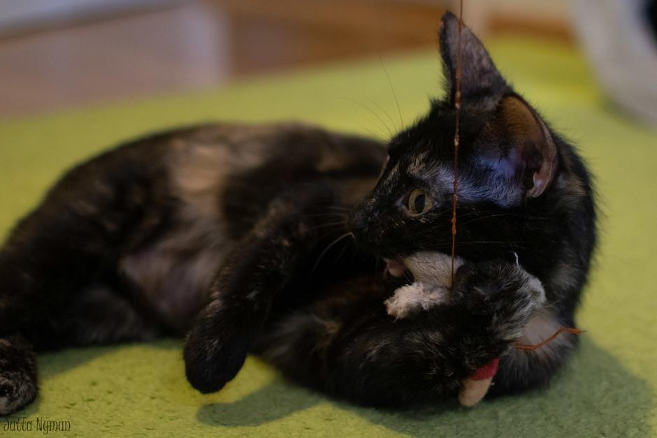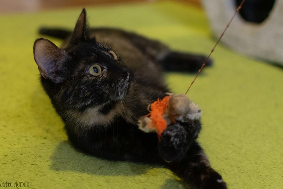 Morgiana tykkää erilaisista älypeleistä, joissa pitää pohtia, ennen kuin saa namin. Näitä kannattaa olla useampia ja vaihdella niitä usein, ettei tyttö kyllästy. Lempileluja ovat kaikki, joissa on höyheniä. Kissaonki on myös todella kiva.