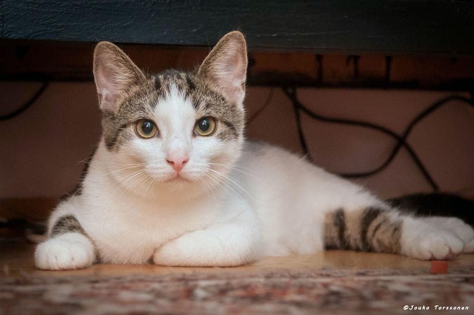 Joonaksella ei ole kokemusta koirista tai lapsista, mutta on aika rohkea ja leppoisa nuori kaveri, joka sopii monenlaisen kodin menoon. Omaan kotiin Joonas tarvitsee kissakaverin.