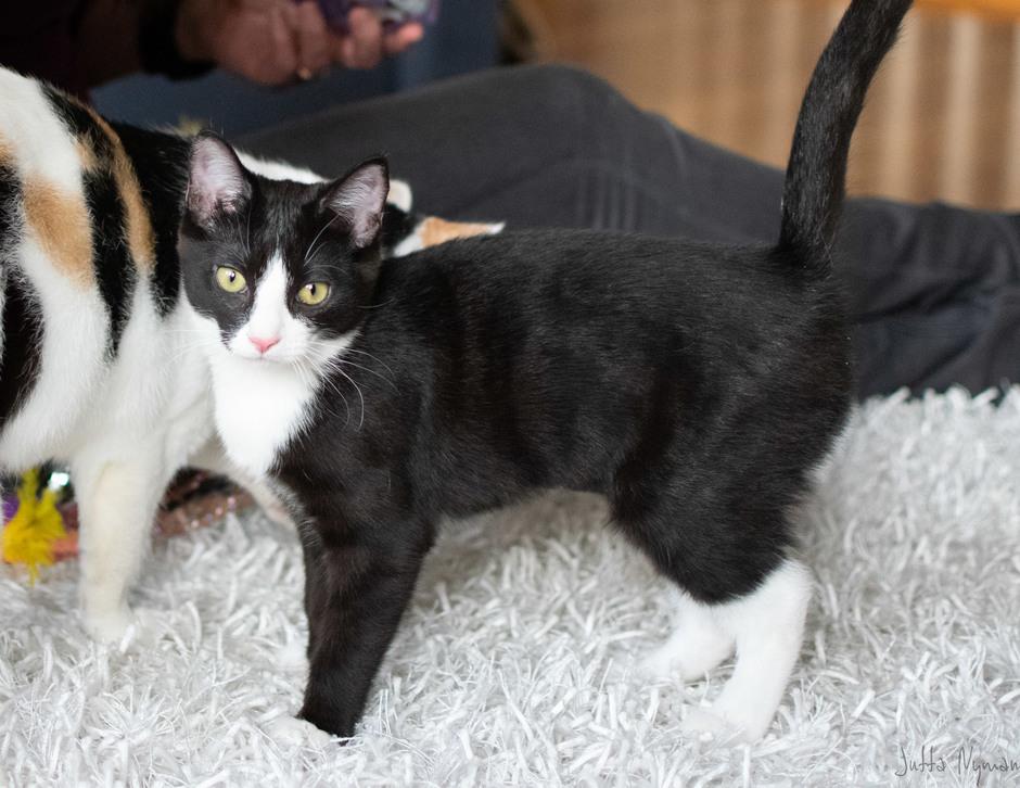 Tässä on kaunis ja suloinen kissaneiti Kiira. Kiiran emo löytyi viimeisillään raskaana metsästä ja löytötarhan kautta sai onneksi sijaiskodin juuri ennen synnytystä. Emo Kaisa saapui sijaiskotiin syyskuisena iltana ja seuraavana aamuna odotti iloinen yllätys. Nyt kämmenen kokoisesta kissanpennusta on kasvanut reipas ja leikkisä tyttö, joka on valmis löytämään ikioman kodin.