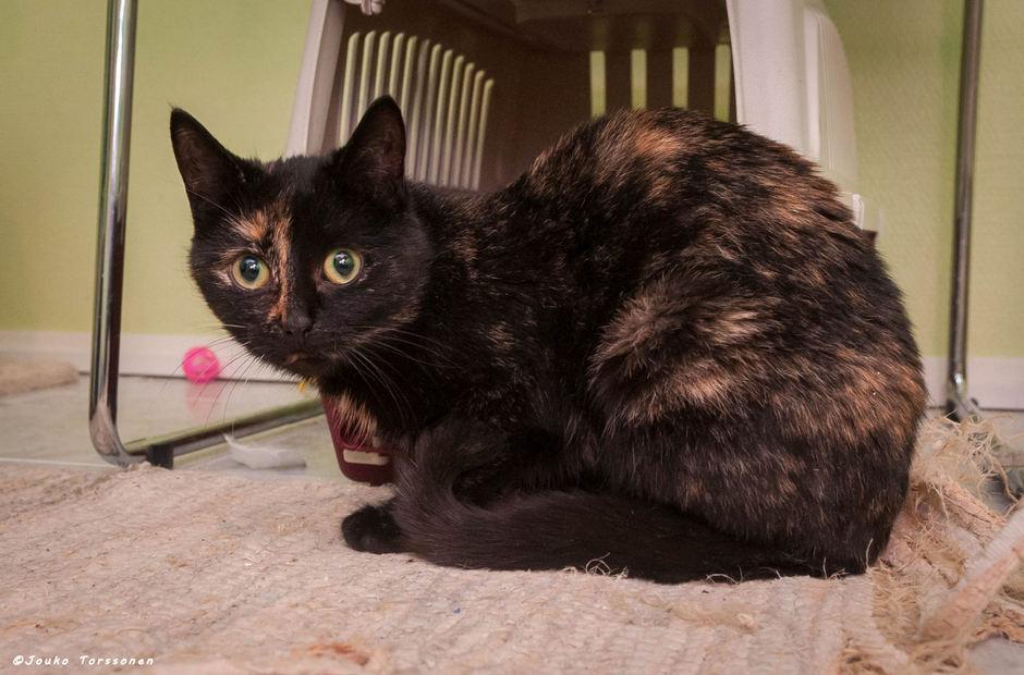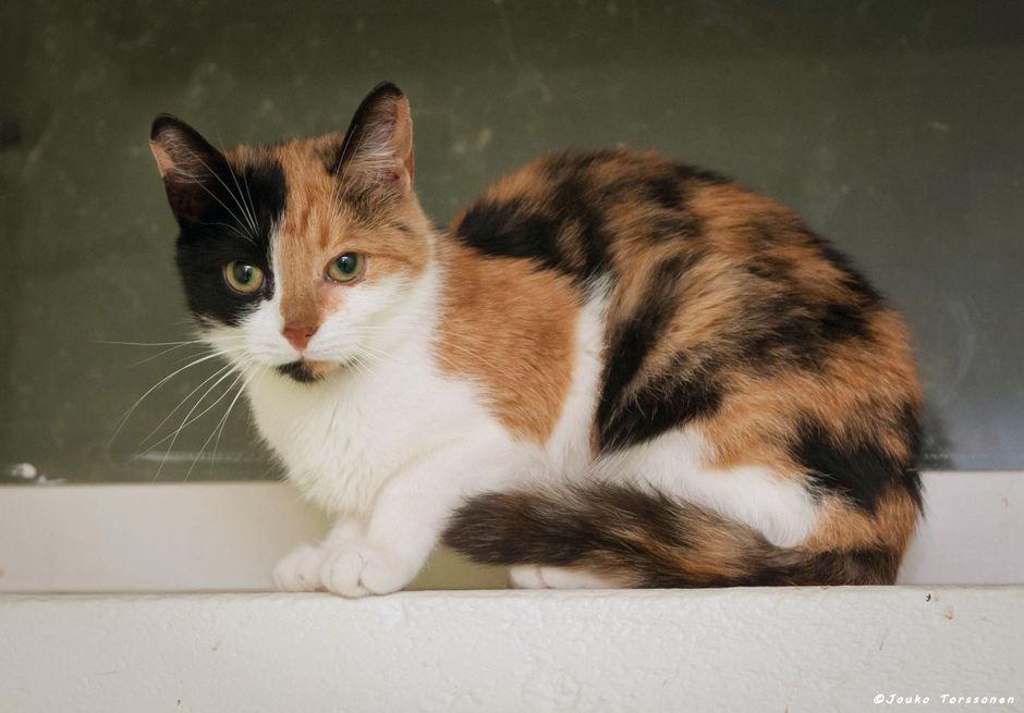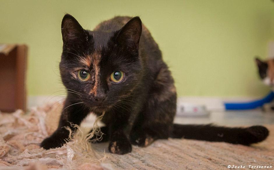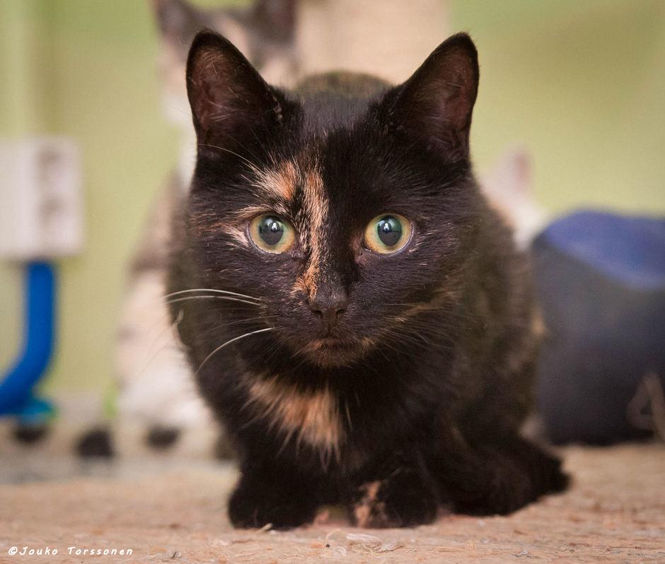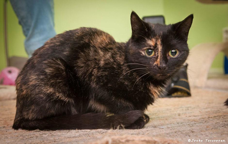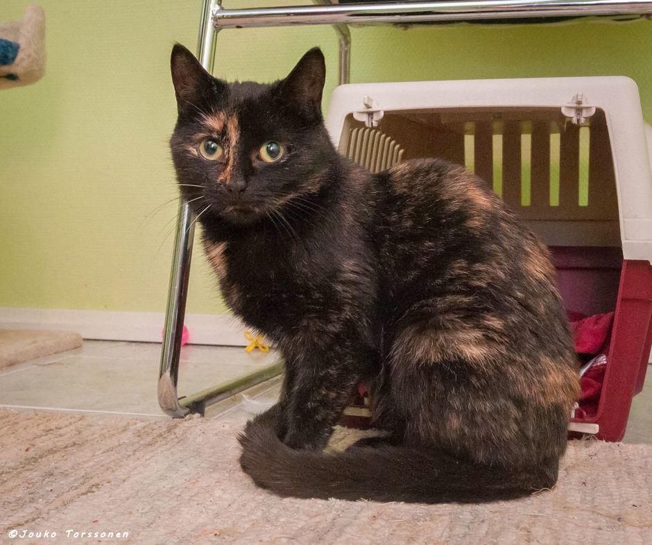 Helmi on noin vuoden ikäinen kissaneito. Helmi on ollut seitsemän kissan lauman arin ja ihminen on ollut hyvin pelottava. Nykyään enää harvoin säikähtää ja lähtee karkuun. Helmi on rauhaa rakastava ja vaatii ehdottomasti rauhallisen ympäristön ja ihmisiltä rauhalliset liikkeet. Silloin herkän on hyvä olla. Yhtäkkiset liikkeet vielä pelottavat. Uuden kodin tärkein tehtävä on luoda lämmin ja luottamuksellinen suhde tähän kovia kokeneeseen kissaan.