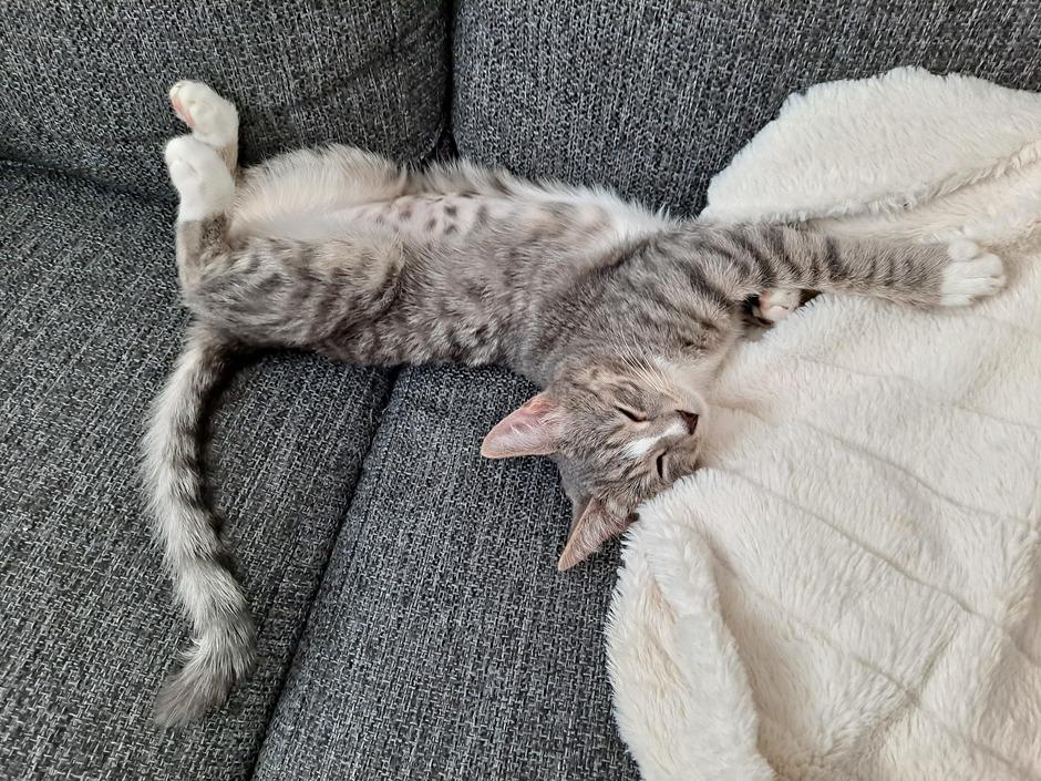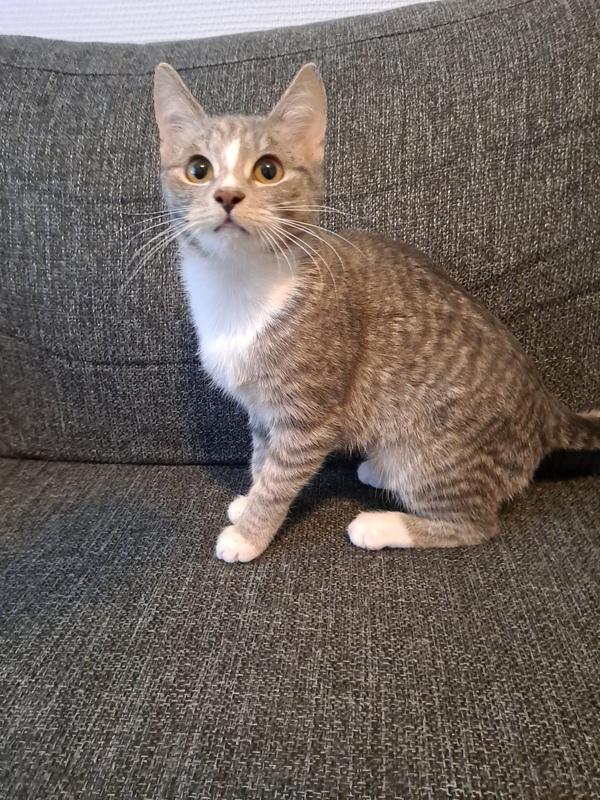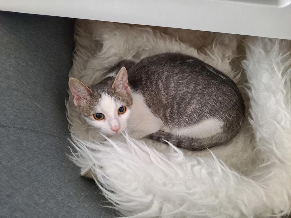 Mila on suurimmaksi osaksi valkoinen harmailla läikillä oleva kaunis neiti. Ihmisen käsittelystä Mila ei vielä pidä ja silitys hetketkin hän päättää toistaiseksi itse, mutta varmasti ajan kanssa nauttii niistä enemmän. Ruoka kuin ruoka maistuu neidille ja vessa käynnit sujuu siististi joka kerta. Mila ansaitsee hyvän kodin missä annetaan aikaa, rakkautta ja ymmärrystä hieman rankan elämän alun saaneelle pikkukissalle.