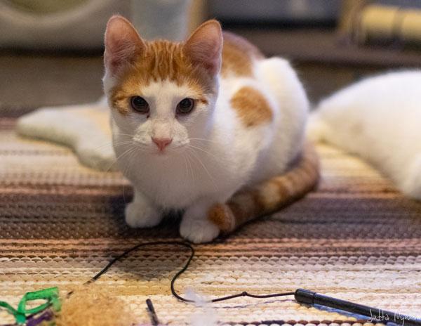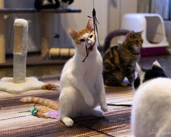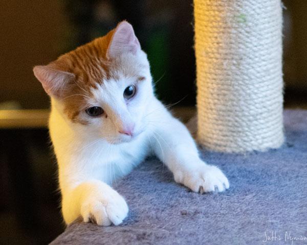 Myrtsi on noin 8 kk ikäinen pikkuherra, jolta ei temperamenttia puutu. Sen lempipuuhaa on ihan kaikenlainen leikkiminen, mitä hurjempaa sen mukavempaa. Huiskalelujen ja pallon perässä kirmaaminen on se ihan ykkösjuttu ja siinä tohinassa herra välillä unohtaakin kaiken muun ympäriltään. Hyppiminen ja kiipeily menee myös listan kärkipäähän mieluisissa asioissa.