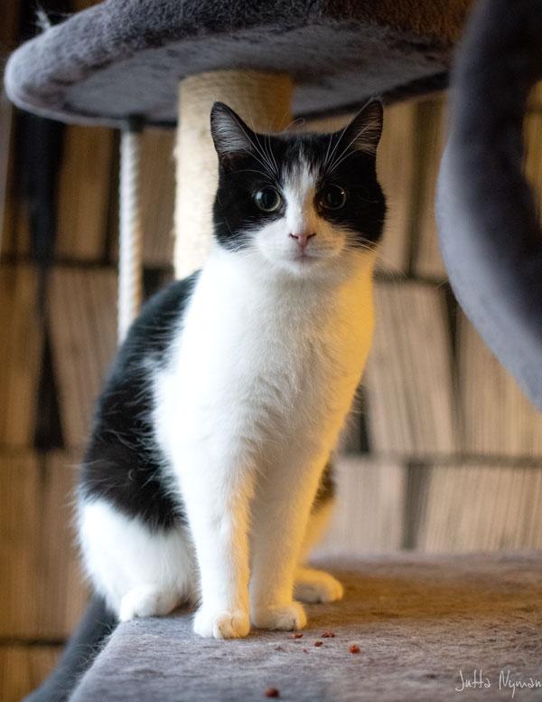 Tämä kaunis tyttö tässä on Näkymätön Ninni. Ninni on noin puolivuotias, pienikokoinen, mustavalkoisen värityksen omaava neitonen. Kauniin suurilla silmillään se tarkkailee ihmistä ja pysyttelee turvallisen välimatkan päässä. Yleensä ihmisen lähestyessä, se tekeytyy näkymättömäksi, mutta antaa välillä kuitenkin silitelläkkin. Hoitotoimien ajan hän pysyy sylissä ilman pyristelyjä, mutta pelokkuutensa vuoksi pinkoo sitten pakoon, jos ei ole omaehtoisesti saanut ihmistä lähestyä. Tämän neitosen kanssa rauhallisuus ja aika on valttia.