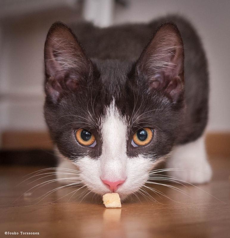 Ruuan suhteen Nappi ei nirsoile, mutta hänellä on herkkä maha, ja useat laadukkaatkin kissanruokamerkit ovat saaneet hänellä masun sekaisin. Siksi varminta on tarjota hänelle raakaruokaa, mutta ei nautaa.