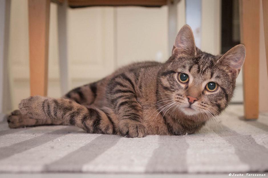 Utelias Tero on, lattialla olevat kauppakassit ovat erityisen kiinnostavia ja ne poika tutkiikin tarkkaan, mahdollisuuksien mukaan pujahtaa myös kassin sisälle. Tero on energinen ja leikkisä. Leikit onnistuu sekä ihmisen että kissakavereiden kanssa. Kissakavereiden kanssa juostaan hippaa sekä painitaan aamuisin ja iltaisin, kun isäntäväki on sängyissään. Silloin koko tyhjä asunto on tilaa juosta kavereiden kanssa hippaa. Ennen leikkejä Tero kutsuu kissakavereita kujertamalla mukaan. Ihmisten kanssa naruleikit ovat parhaita ja yksin Tero pyörittää mieleellään mm. pingispalloja. Leikeissä Tero tulee huomaamattaan hyvin lähelle ihmistä, mutta saattaa yhtäkkiä säpsähtää kun huomaa leikin hurmassa tulleensa ihan ihmisen viereen. Yöksi poika rauhoittuu nukkumaan. Nukkamapaikkana on sohva tai isäntäväen sänky.