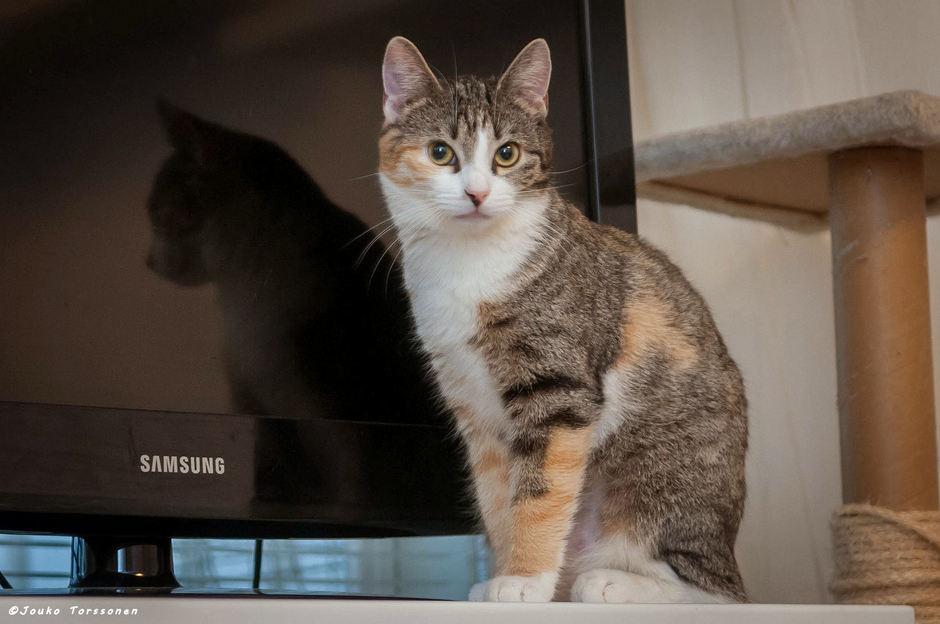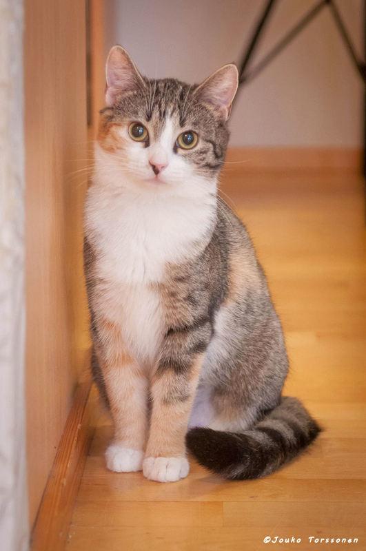 Tiuhti on vielä varautunut vieraita kohtaan, mutta leikkii ja tulee näytille. Kun saa Tiuhtin luottamuksen, se nukkuu vieressä, sitä saa ottaa syliin ja rapsutella. Se on kova myös juttelemaan. Rapisevat tai helisevät lelut, laservalo ja pompulat ovat sen lempileluja. Sylikissa se ei ole, mutta on silti seurallinen. Tiuhti on sisäsiisti tapaus.