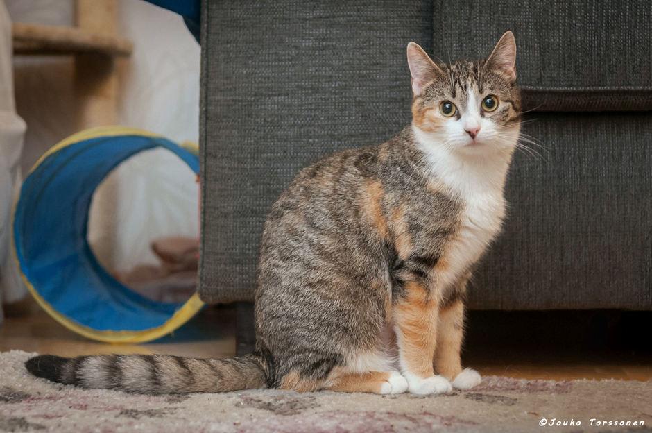 Tiuhti on kilpikonna kuvioinen naaraskissa. Se on syntynyt 2019 loppukesästä. Ennen löytymistään se oli jo ehtinyt hieman viillintyä, mutta pikkuhiljaa se on kerännyt rohkeutta ja alkanut luottaa ihmisiin.