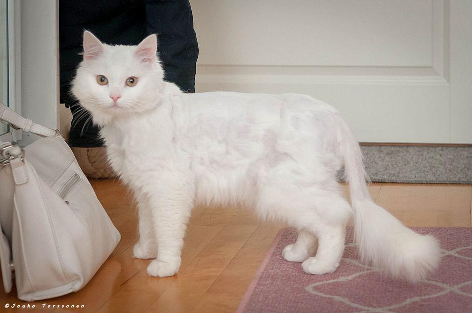 Amadeus joutui turkin ajeluun, koska oli niin kovin takkuinen, mutta nyt valkoinen karva kasvaa vinhaa vauhtia takaisin. Amadeus on puolipitkäkarvainen, joten uuden karvan kasvua on autettu vauvaharjalla. Amadeus oli ollut kulmakunnan kovin kolli, siitä sijaiskotiin saapuessa olivat muistona ruvet päässä. Sijaiskodissa ollut ainoana kissana ison egonsa vuoksi. Tämän takia etsii myös kotia ainoana kissana.