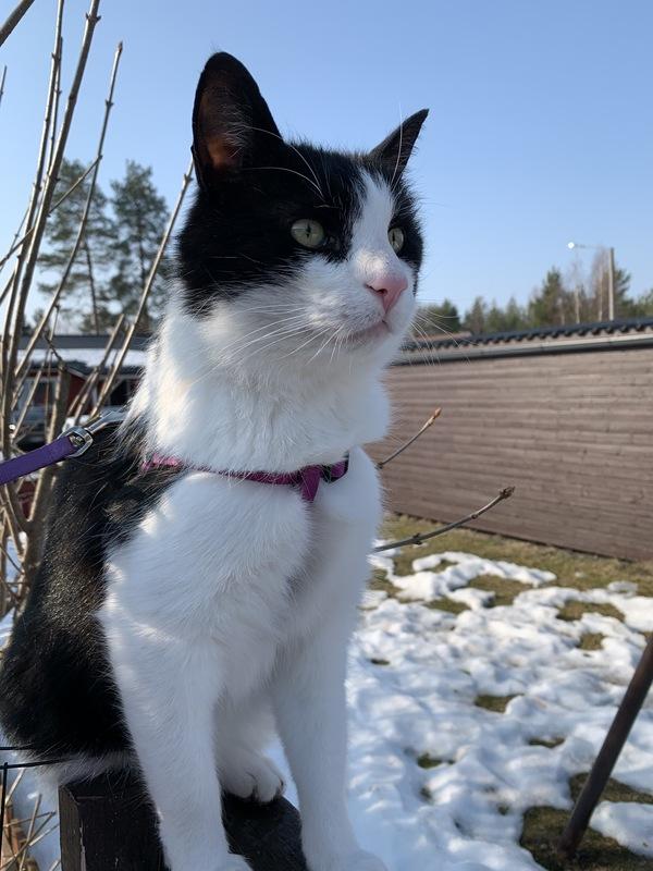 Bosse nuuhkii mielellään ulkoilmaa. Toivottavaa olisi, että omassa kodissa Bosselle olisi turvallinen mahdollisuus ulkoiluun, joko kissatarha tai verkotettu/lasitettu parveke. Bosse on kokeillut sijaiskodissa valjaissa ulkoilua aidatulla pihalla ja nauttii siitä paljon.