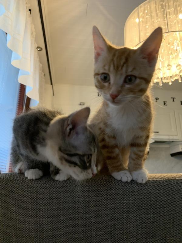 Ruoka maistuu ja sitähän nämä syövät! Märkäruokana on viljattomat ja lihaisat patee-ruoat. Suurinta herkkua on kissoille tarkoitettu raakaruoka ja sen päälle kunnon torkut. Siinä on elämä mallillaan. Ruuista saa sijaiskodista ohjeistuksen. Hiekkalaatikkoasiat hoituvat mallikkaasti.