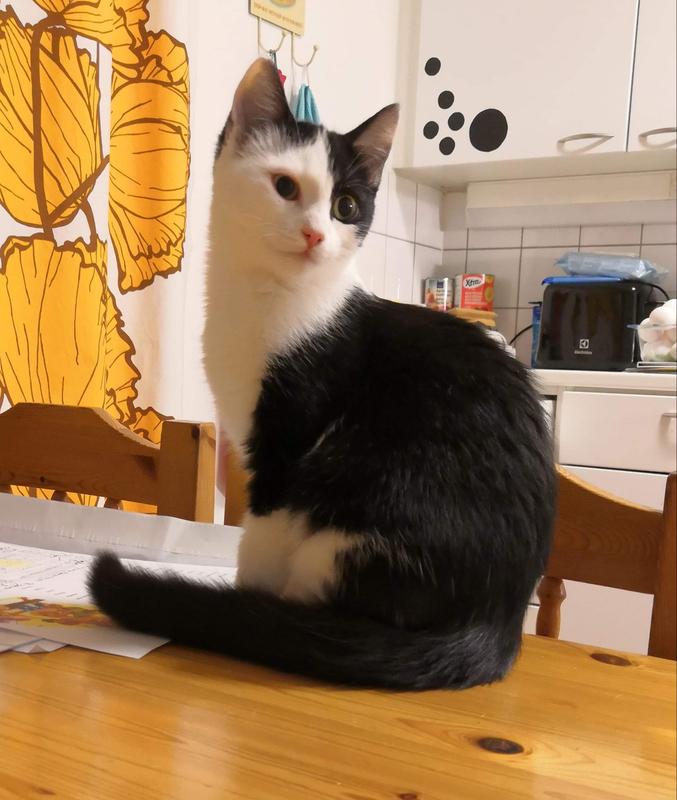Myrsky on löytynyt pentuna sisaruksiensa kanssa ilman emoa ja päässeet sijaiskodin hoiviin. Tällä hetkellä Myrsky on noin puolivuotias isokokoinen neito.