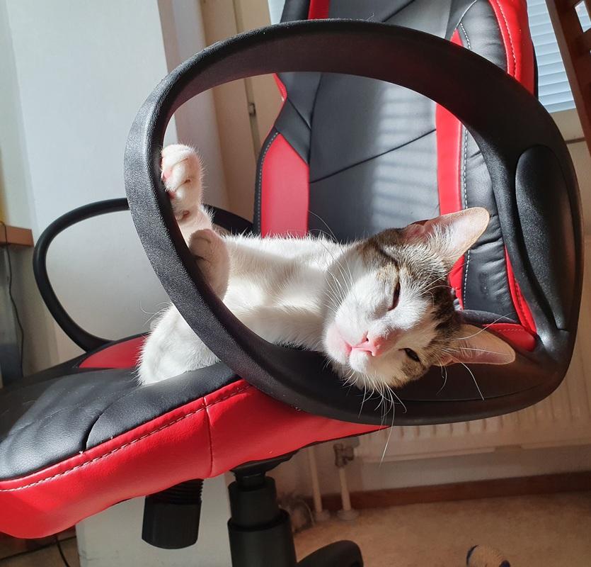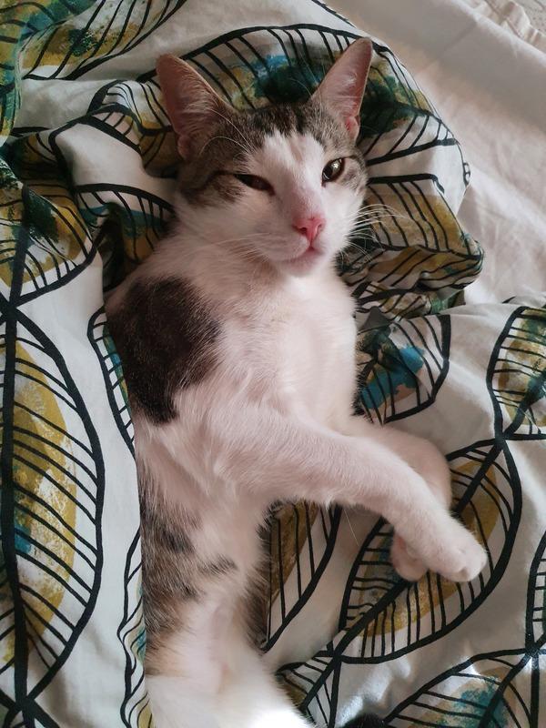 Narri nauttii sylissä torkkumisesta ja kunnon rapsutuksista. Lämmön perässä kömmitään välillä ihan viereen peiton alle ja ajoittain tyttö nukkuu kokonaisia öitä tiiviisti jalkojen viereen käpertyneenä.