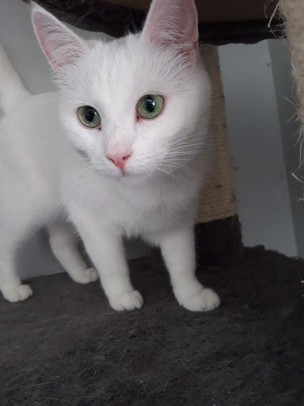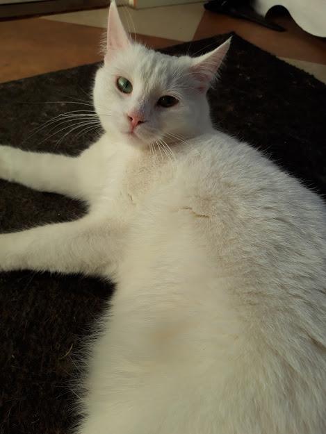 Tämä reilu 3,5-vuotias kaunis valkoinen neito etsi pitkään omaa yhteistä kotia siskonsa kanssa. Valitettavasti Solveig menetti siskonsa, johon oli kovin kiintynyt. Solveig on tottunut elämään useamman kissan kanssa. Neitonen on mielellään toisten kissojen kanssa pesten toisten naamoja ja leikkien yhdessä.