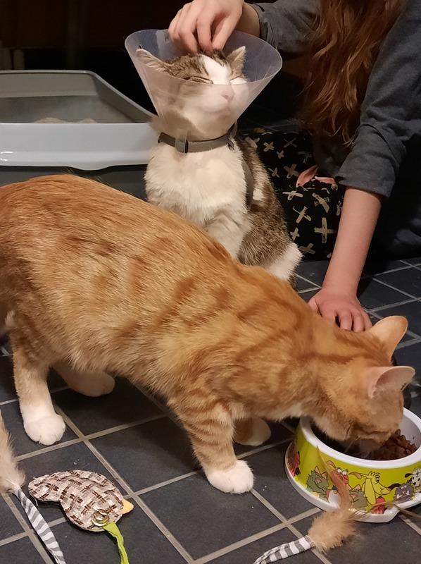 Spyro tulee hyvin toimeen muiden kissojen kanssa ja vaatiikin uudessa kodissa kissakaverin seuraa. Sijaiskodin omilta kissoilta se on oppinut, että kannattaa tulla aamuisin keittiöön odottamaan ruokaa muiden kissojen kanssa. Se on tottunut entisessä elämässä ja sijaiskodissa kissakaverien seuraan.