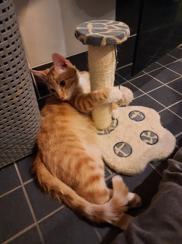 Spyro on kesällä 1-vuotta täyttävä poika. Väriltään se on oranssitiikeri, valkoista sillä on tassuissa ja rinnassa.
