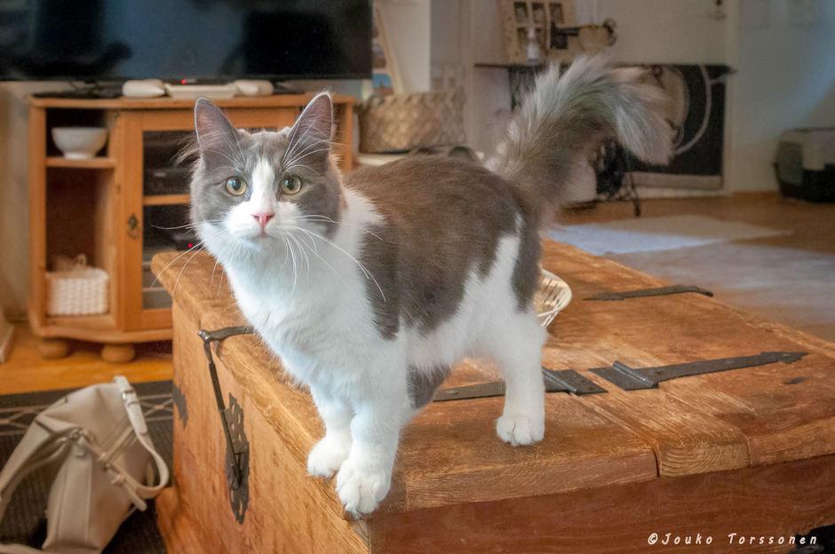 Tauno on vähän mammanpoika, sen täytyy öisinkin kömpiä ihmisten kanssa samaan sänkyyn. Mauno on tosimies, se uskaltaa nukkua yksin.