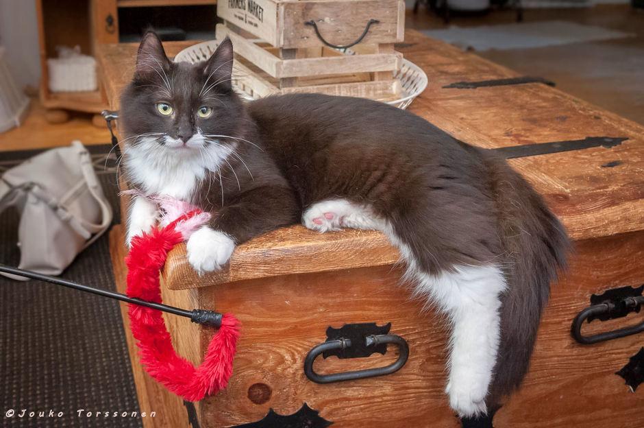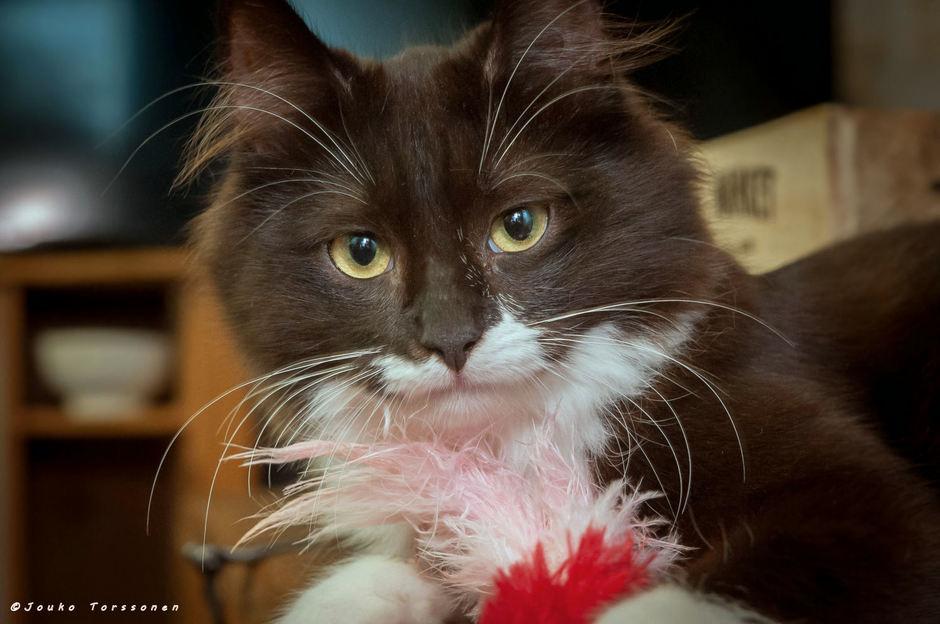 Me ollaan muuten tosi rohkeitakin. Me ei pelätä edes imuria. Ja mopin kimppuun me hyökätään. Me asutaan sijaiskodissa koirien ja kissojen kanssa. Me leikitään aina sijaiskodin 50-kiloisen koiran hännällä, se heiluu niin kivasti, että on aina ihan pakko vähän läpsäistä.