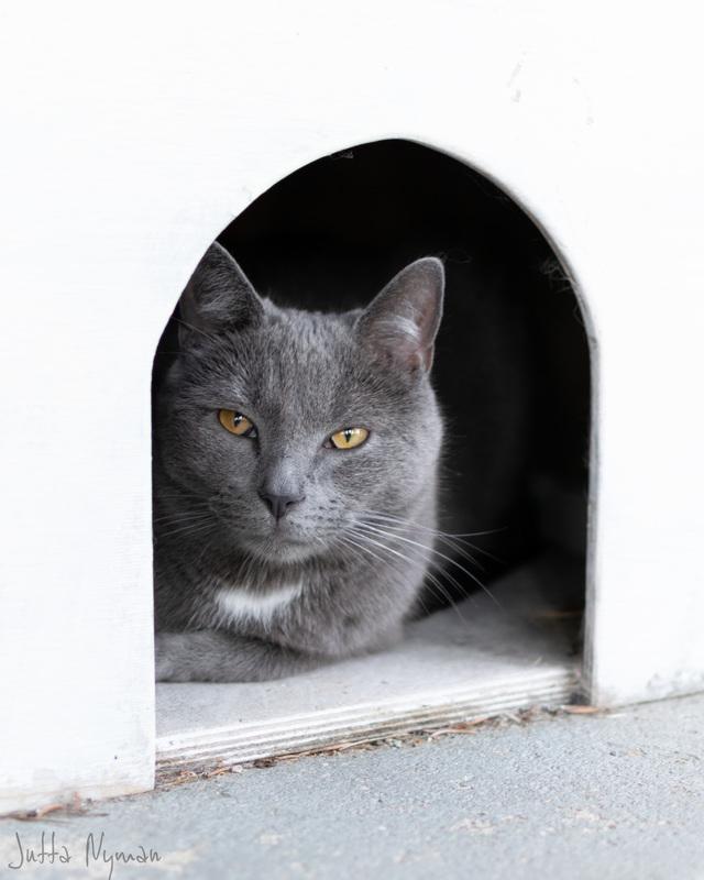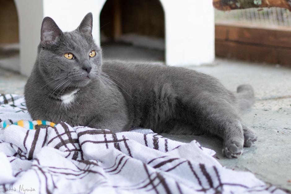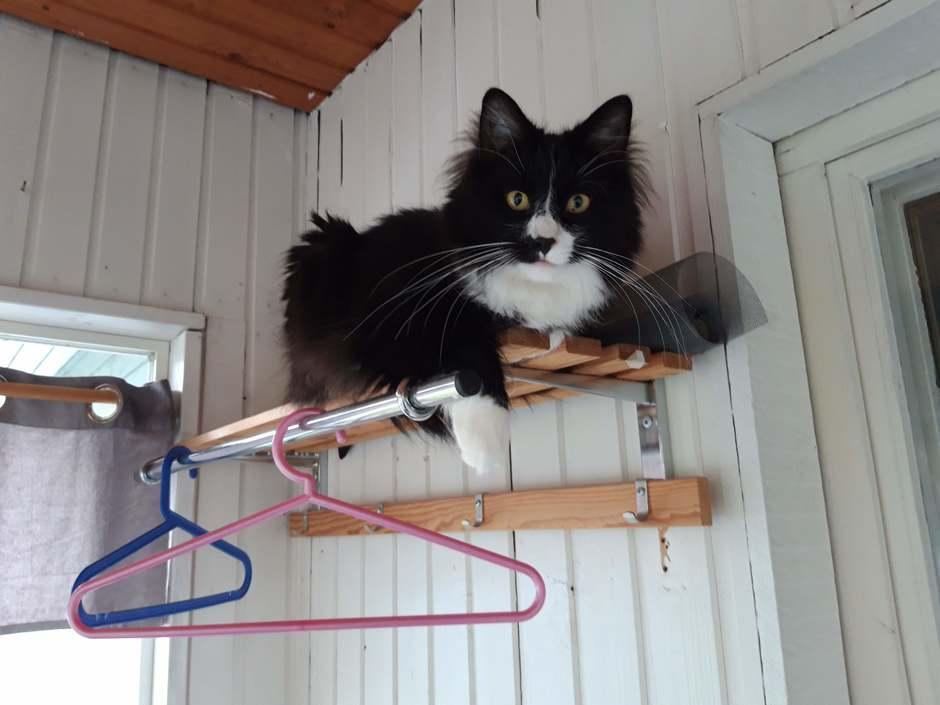 Tykkää ottaa päiväunet mieluiten kiipeilypuun korkeuksissa ja öisin nukkuu sängyn jalkopäässä.