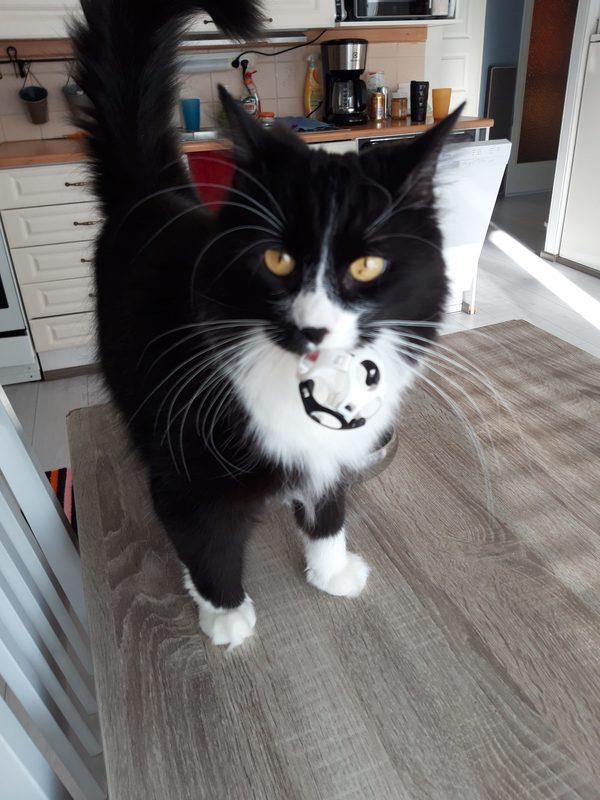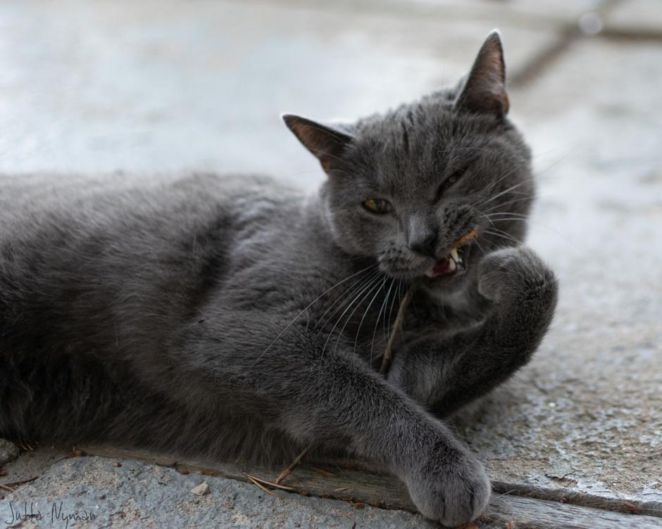 Tintti tykkää leikkiä toisten kissojen kanssa ja innostuu myös välillä juoksemaan pienien leluhiirien perässä.
