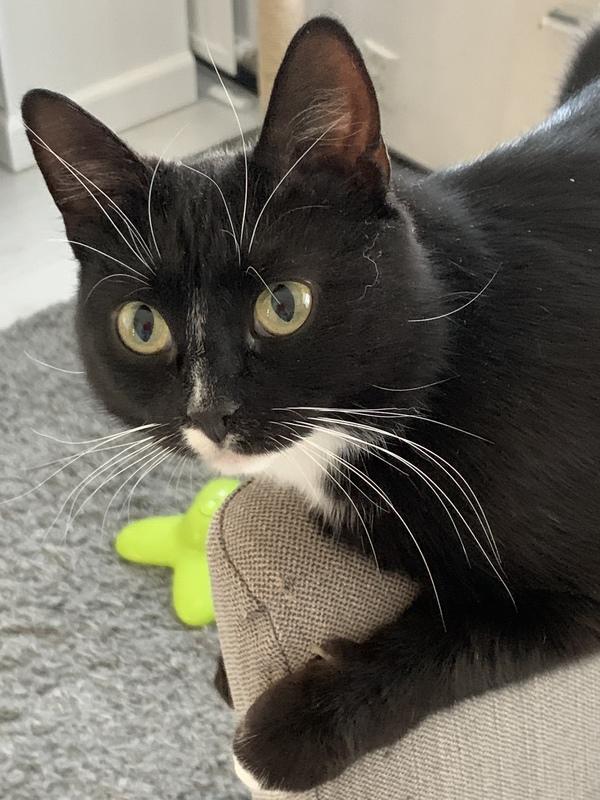 Leikkiminen taitaa olla Toukalle uusi asia, koska leikkiminen on lisääntynyt mitä pidempään hän sijaiskodissa on asustellut. Kovat ja helposti pyörivät pallot ovat toisinaan kivoja, toisena päivänä ne eivät kiinnosta pätkääkään. Paras leikki palloilla on kun ihmisen heittelee niitä ja Touka ottaa niistä koppia ilmassa. Ihmisen heiluttama tai maton reunan alle piiloutuva narunpätkä on toistaiseksi ollut leluista kestosuosikki.