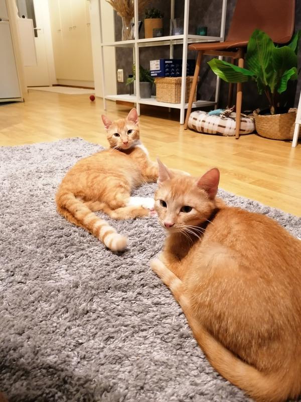Meidät on sisaruksien kanssa pelastettu sijaiskoteihin alkuvuodesta. Olemme syntyneet toukokuussa 2020, eli tällä hetkellä olemme noin 10 kk ikäisiä. Vaikka olemme olleet sisäkissoina vasta muutamia kuukausia, alkujännityksestä huolimatta aloimme nopeasti ottaa kontaktia ihmisiin.