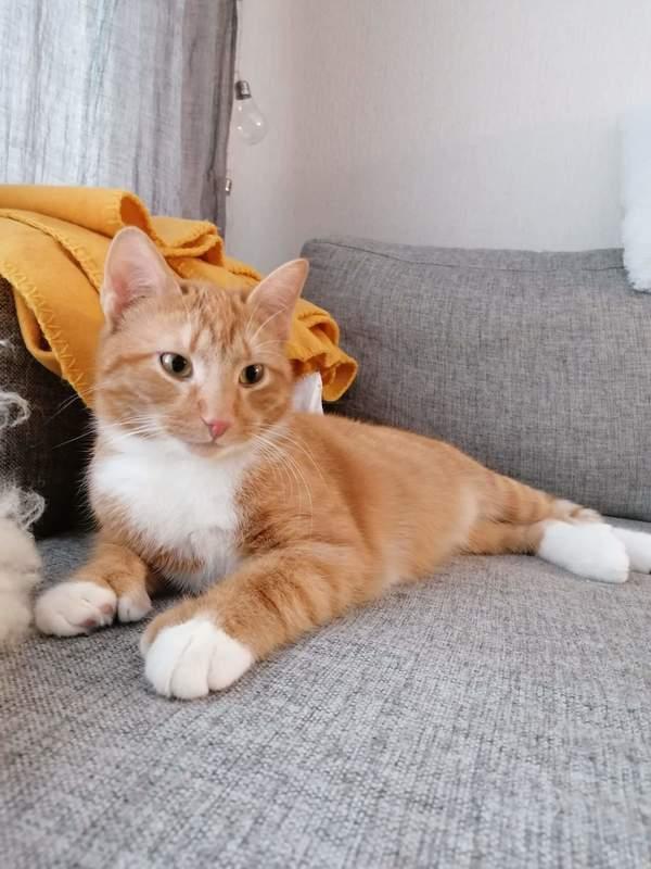 Tulen hakemaan rapsutuksia ja silityksiä sinulta, vaikka olenkin hieman ujo. Tykkään hypätä sohvalle viereen katsomaan televisiota ja kehräämään kovaäänisesti. Minulta löytyy joka tassusta 6 varvasta, joten rakastankin leipoa ja tassutella isoilla tassuillani. Yöni vietän useasti sohvalla pehmeässä ja lämpimässä.