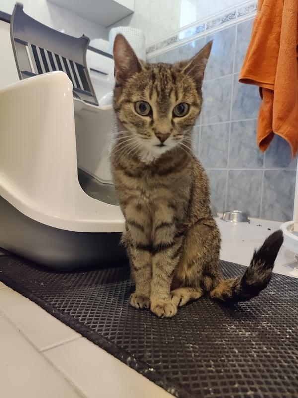 Tässä on pieni ruskeatiikerinen seuraneiti Ulla. Ullan omistajan menehdyttyä Ssesy otti tämän kauniin raitanutun huomaansa.