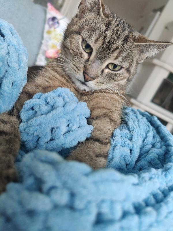 Ulla on perso ruualle ja herkuille ja näiden avulla myös vieraat pääsevät antamaan rapsutuksia. Ulla on myös opetellut leikkimään! Ehdottomasti kivointa on kuitenkin olla siliteltävänä ja makoilla yhdessä sijaiskodin emännän kanssa sohvalla. Välillä Ulla kömpii nukkumaan syliinkin.