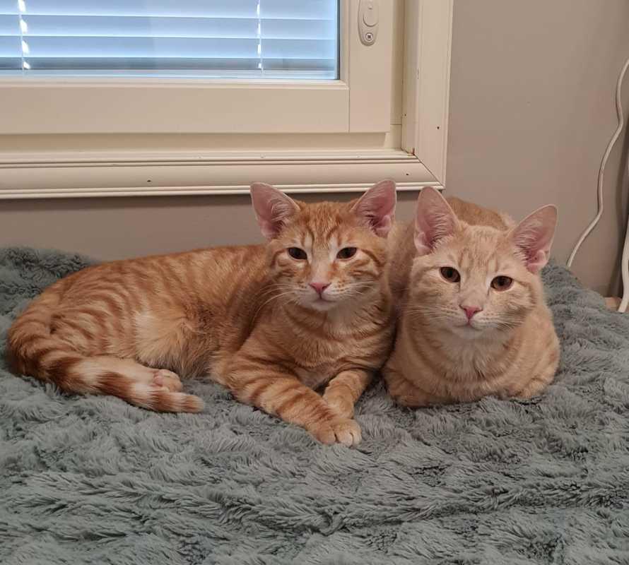 Veljekset ovat todella reippaita, uteliaita ja ihania pieniä kissaherroja. Hugo on kaksikosta hieman varovaisempi, kun taas Papu on reteämpi tapaus. He ovat kovia leikkimään, mutta viihtyvät myös sylissä ja haluavat olla kaikessa mukana. Veljekset ovat tykänneet myös ulkoilla valjaissa.