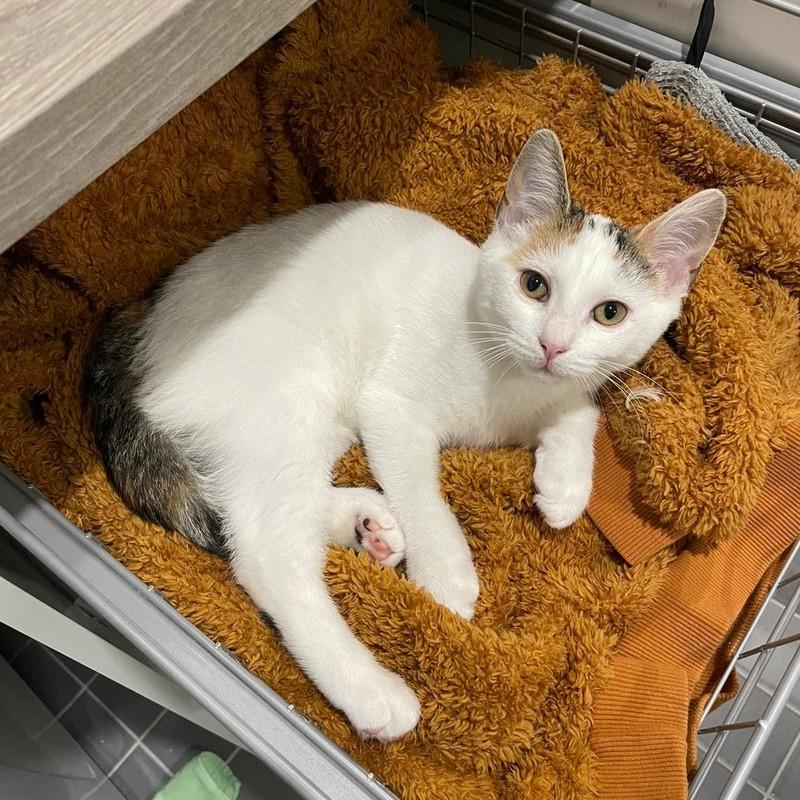 Säde on noin puolivuotias, kilpikonnakuvioinen tyttökissa, joka saapui sijaiskotiin heinäkuussa hyvin kipeänä. Muun muassa mykoplasma-bakteerista eroon pääsemiseen vaadittiin voimakas antibioottikuuri, joka voi vaikuttaa pennuilla luuston kasvuun. Säteellä voi siis aikuisena olla hieman suurempi luunmurtumariski, mutta taudit ovat nyt vihdoin takanapäin.