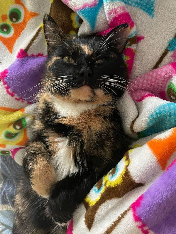 Selma on noin 3-vuotias kaunis kilpparineito. Tämä kehruukone rakastaa läheisyyttä ja rapsutuksia. Selma tulee mielellään myös öisin kainaloon nukkumaan.
