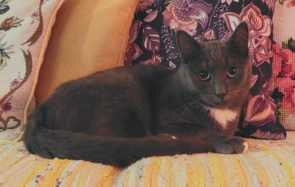 Tämä komistus on Väinö, joka on vasta noin 1 vuoden ikään päässyt harmaa valkoisella kaulalapulla ja tassuläiskillä varustettu nuori mies. Väinö etsii kotia mielellään ainoana kissana.