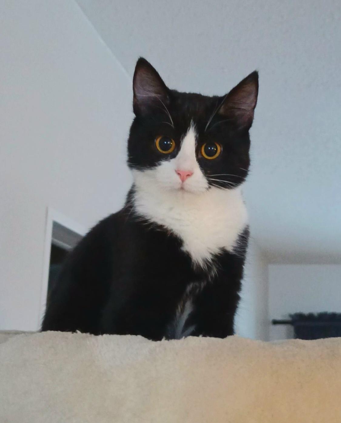 Selena on siskoaan ujompi ja varautuneempi ihmisen kosketukselle ja katsekontaktille. Sijaiskotiin tullessa Selena oli erittäin arka, ja kaunis mustavalkoinen tyttö onkin rohkaistunut niistä ajoista hurjasti. Kaikki uusi on kuitenkin Selenalle vielä epäilyttävää ja sängyn alla on paras turvapaikka. Sieltä on hyvä myös läpsiä sijaismamman varpaita.