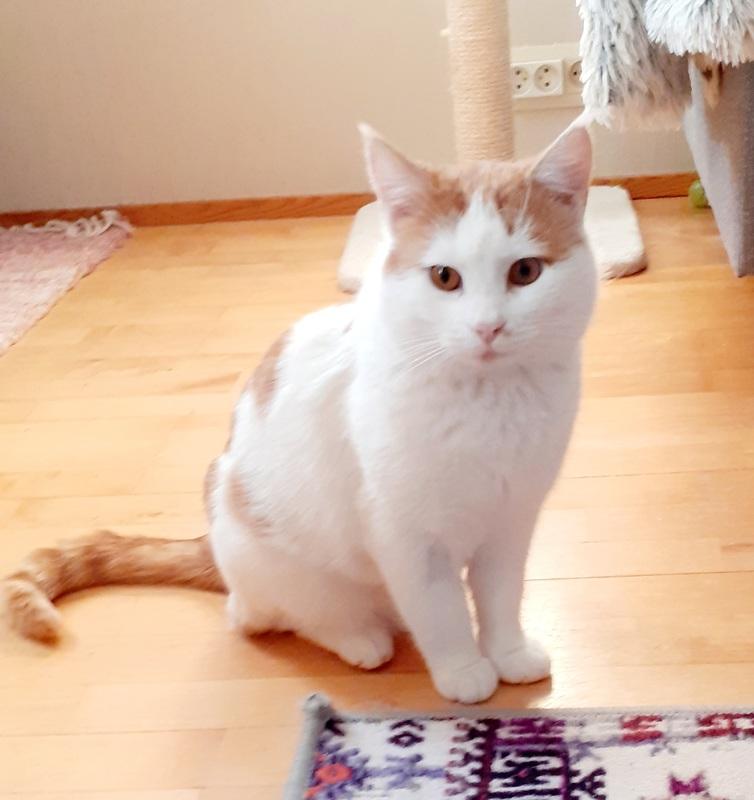 Kaapo on noin 2-vuotias komea punavalkoinen kollipoika, joka etsii kissakaverillista kotia.