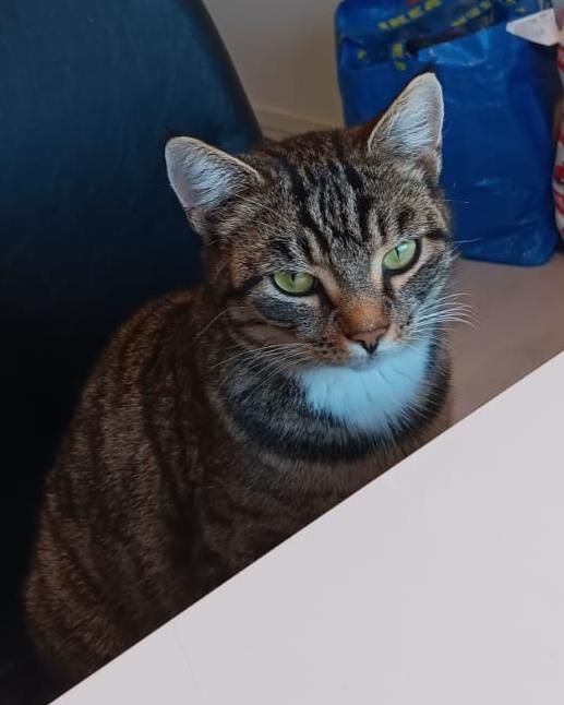 Naomi on arviolta noin 4-vuotias ruskeatiikerivalkoinen kiltti tyttökissa. Hänet löydettiin eräästä ulkorakennuksesta viiden pienen pentunsa kanssa elokuun lopulla. Nyt pennut ovat tulleet riittävän isoiksi ja ovat muuttamassa omiin koteihin. Naominkin olisi aika löytää oma loppuelämän koti.