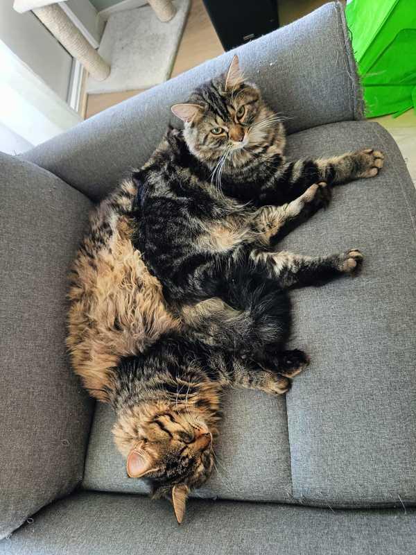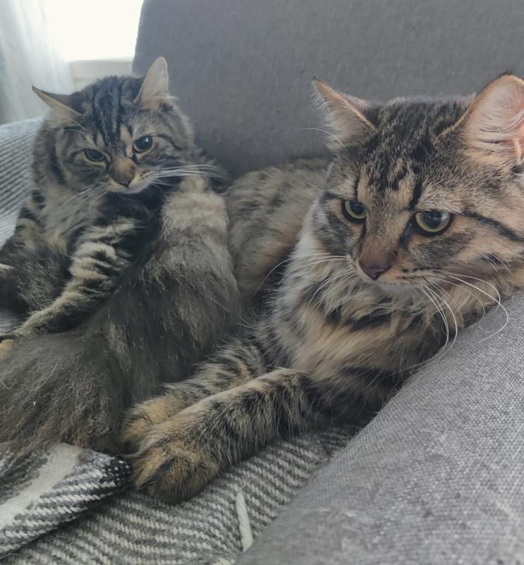 Tämä komea parivaljakko Sinttis ja Leevi etsivät yhteistä kotia. Pojista Sinttis on 15 kk ikäinen nuorukainen ja Leevi hieman nuorempi 13 kk ikäinen kloppi. Molemmat ovat upeita pitkäkarvaisia ruskeatiikerisiä komistuksia. He ovat aivan eri puolilta Etelä-Pohjanmaata, mutta silti melkein kuin identtiset!