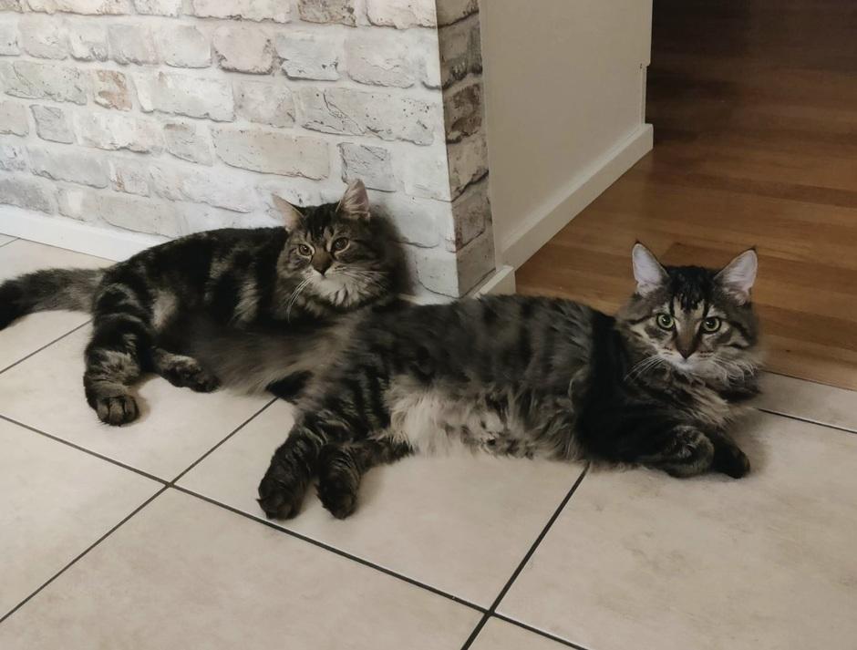 Tämä komea parivaljakko Sinttis ja Leevi etsivät yhteistä kotia. Pojista Sinttis on 15 kk ikäinen nuorukainen ja Leevi hieman nuorempi 13 kk ikäinen kloppi. Molemmat ovat upeita pitkäkarvaisia ruskeatiikerisiä komistuksia. He ovat aivan eri puolilta Etelä-Pohjanmaata, mutta silti melkein kuin identtiset!