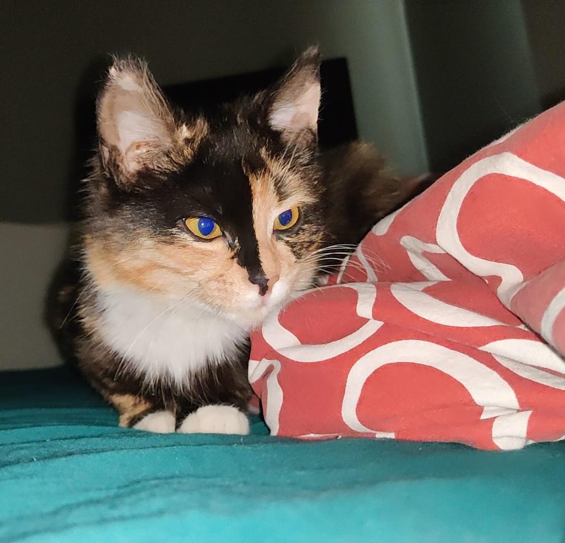 Spicylle tärkeintä on oppia luottamaan omaan ihmiseensä. Vieraat ihmiset ovat edelleen pelottavia, mutta rauhassa antaa tutustua niin on kyllä jotenkuten tottunut sijaiskodissa säännöllisesti kyläileviin. Spicy on leimautunut omaan ihmiseen kovasti, antaa silitellä, hellitellä ja tykkää olla todella lähellä. Varsinkin nukkumaan mennessä neiti tulee päälle nukkumaan, kehräämään sekä vaatimaan paijauksia ja lämpöä.