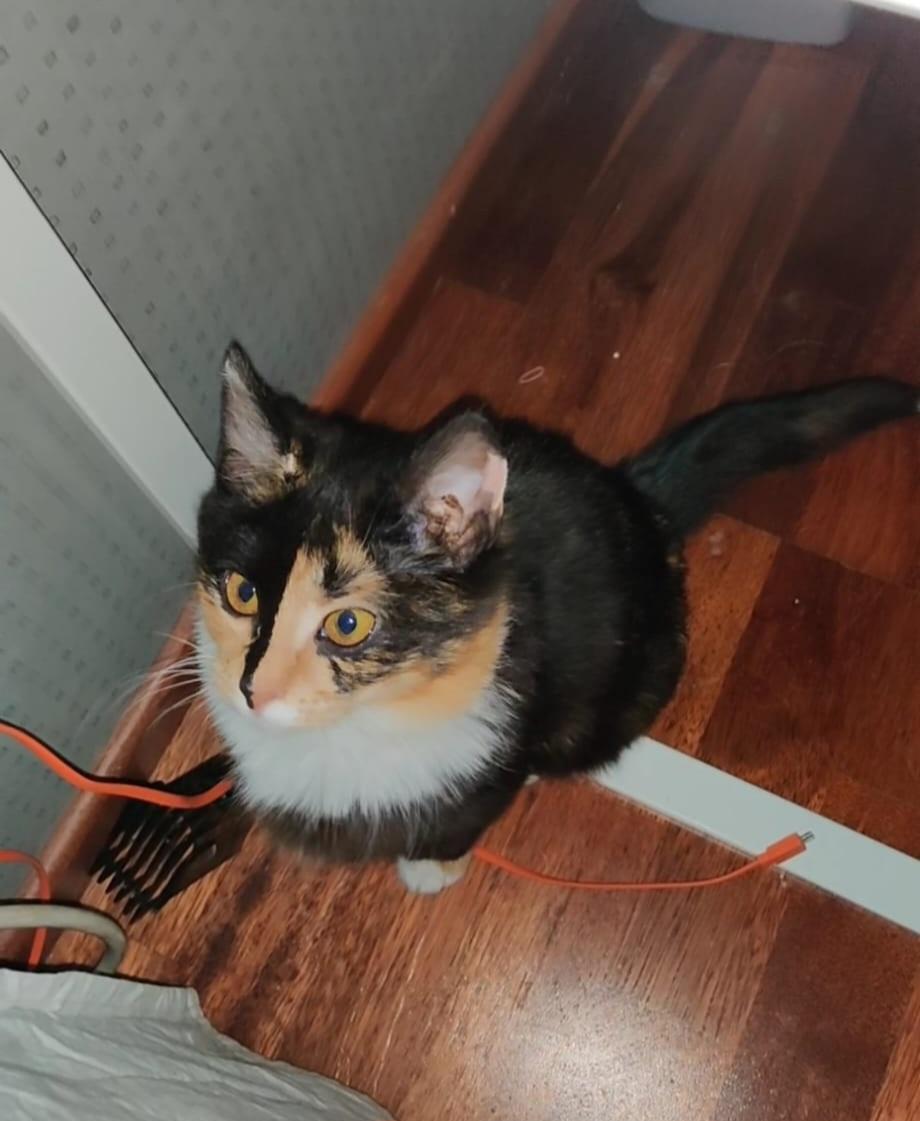 Spicy tuli sijaiskotiin 3 kk ikäisenä löydyttyään hylättynä roskiksesta. Spicy oli tullessaan hyvin arka ja vältteli ihmiskosketusta, mutta on nyt sijaiskodissa reipastunut todella paljon. Ensimmäinen viikko menikin verhotangon päällä nukkuessa ja alas tultiin vain ruoka-aikaan.