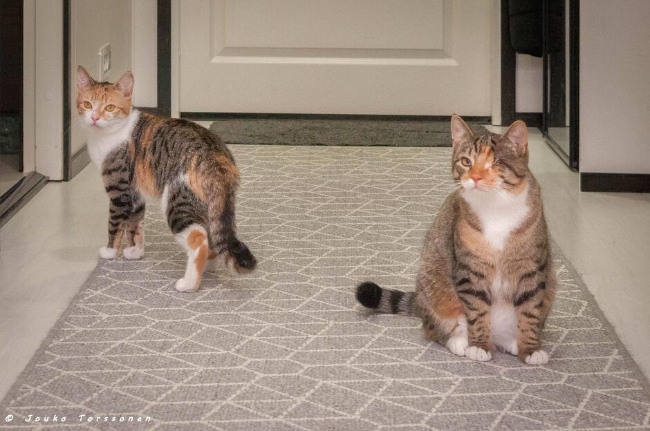 Ovikello merkitsee vieraita, joten silloin on turvallisinta singahtaa makuuhuoneen turvaan ja sieltä sitten tulla omaan tahtiin arvioimaan tulijaa. Yöt tytöt nukkuvat rauhassa, koska päivisin riittää tekemistä. Jos ihminen on vähän luistanut päivätekemisen järjestämisestä, tokihan silloin yöllä riittää energiaa.