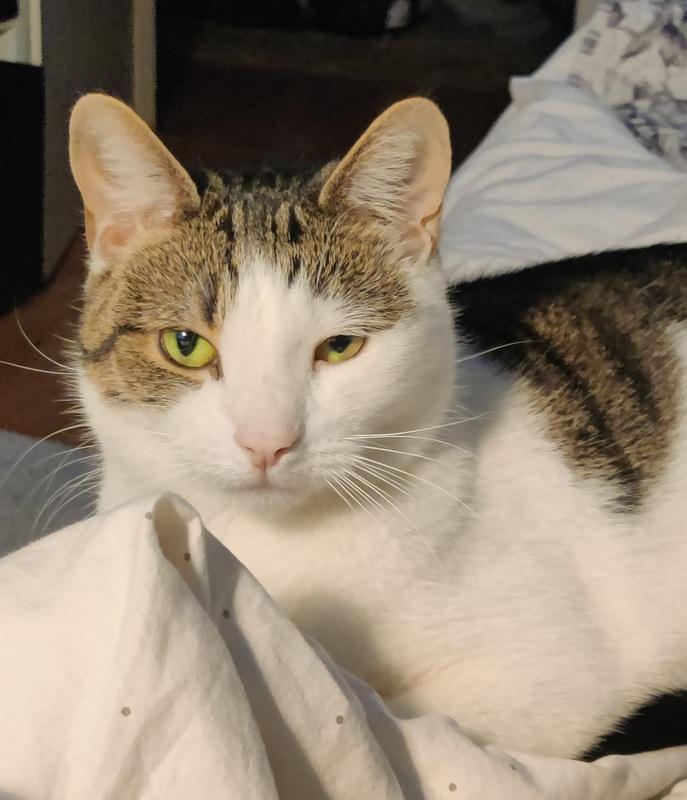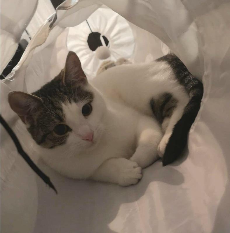 Nöpö rakastaa ruokaa ja söisikin aivan ylenmäärin. Omassa kodissa kannattaa vähän rajoittaa ruuan saantia. Nöpölle kelpaa monipuolisesti raksut ja märkäruoka, kun vielä ei ole tullut vastaan huonosti maistuvaa ruokaa. Vessa-asiat toimitetaan hienosti laatikolle. Sijaiskodissa käytetty paakkuuntuvaa hiekkaa.