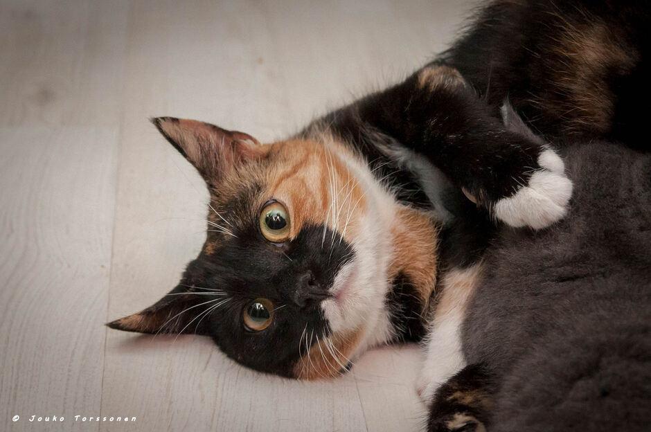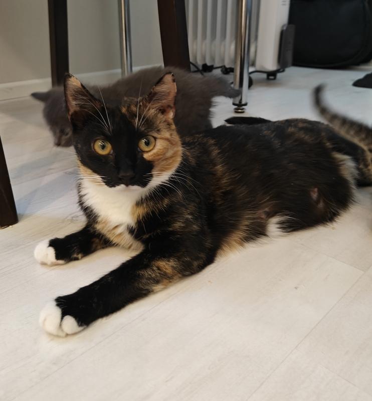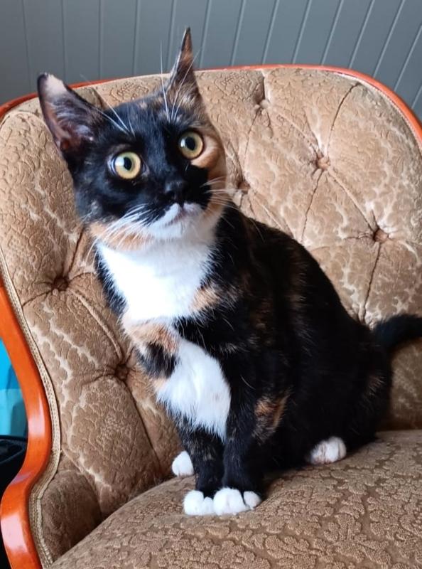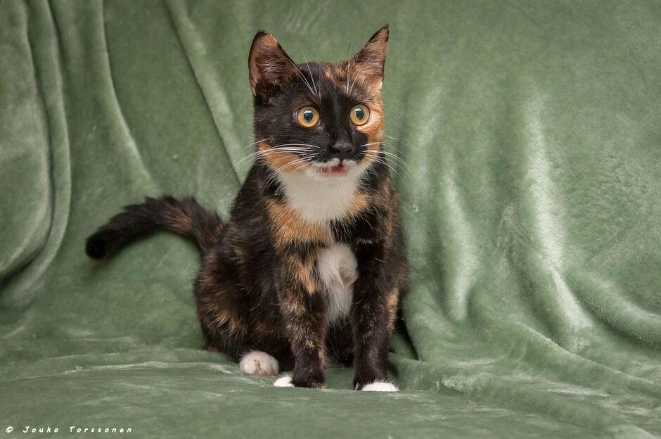 Tämä ihana kilpikonnakuvioinen neiti on Olga. Olga on melko pieni ja siro, arviolta 2-vuotias, asuu sijaiskodissa Ilmajoella ja kotoisin Etelä-Pohjanmaalta.