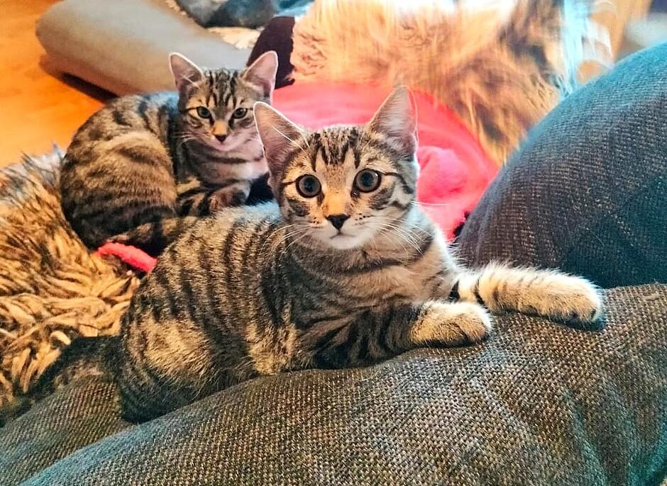 Sisarukset osaavat kuitenkin käyttäytyä asiallisesti sisäkissana, eivätkä ole tuhonneet paikkoja. Kovia touhaajia he kyllä ovat, ja kaikki paperiset ja pahviset lipareet on mukava repiä palasiksi, ja vauhti on joskus niin kova, että matot menevät ruttuun. Pennut ovat kaikkiruokaisia, eikä heillä ole mitään ruokarajoitteita. Ovat tottuneet syömään laadukasta viljatonta märkä- ja kuivaruokaa. Vessa-asiat on hoidettu mallikkaasti ihan ensimmäisestä päivästä lähtien. He tulevat toimeen muiden kissojen kanssa, ja ovat varovaisia tutustumisen alussa. Pienen tutustumisen jälkeen leikkiseura on aina tervetullutta! Heille on hirveän tärkeää saada ja antaa huolenpitoa ja pesuja toisilta kissoilta, ja he usein alkavat kehrätä jo nähdessään toisensa tai sijaiskodin muut kissat. Vaikka tämän pesueen raitapaidat ovat hyvin samannäköisä tottumattomaan silmään, heihin tutustuessa alkaa eroja huomaamaan.