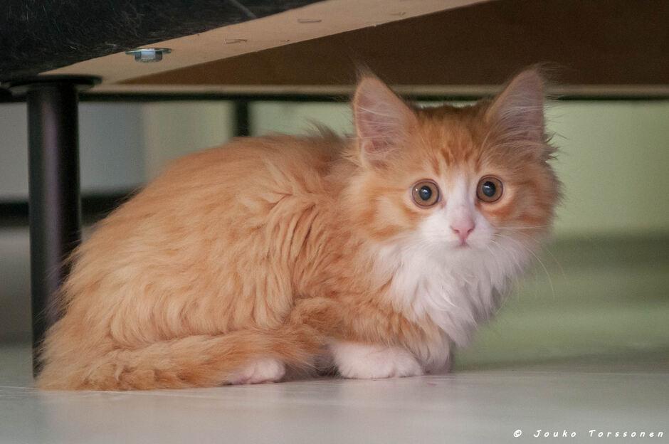 Siskoaan hieman reippaampi Viuhti tykkää seikkailla jokaisessa avonaisessa kaapissa ja on ensimmäisenä tervehtimässä myös kylään saapuvia ihmisiä. Suoranainen sylikissa Viuhti ei ainakaan vielä näin nuorena ole, mutta viihtyy paremmin siliteltävänä kuin siskonsa. Pentuaikojen vauhdin hieman hellitettyä saattaa Viuhdista kehkeytyä vielä kunnon marakatti.